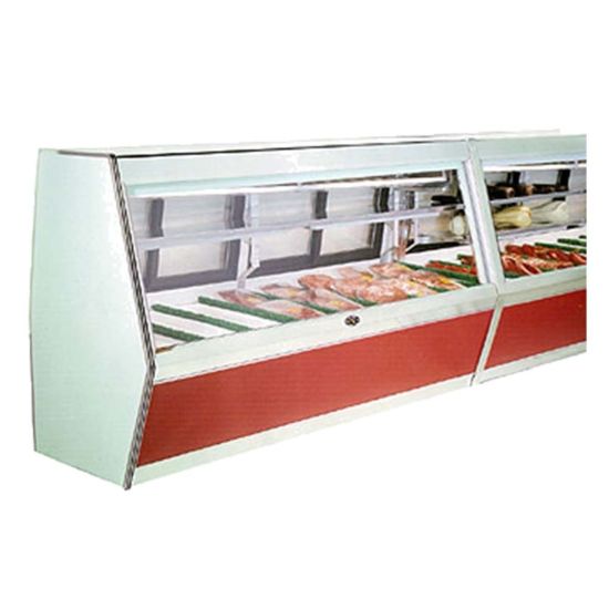Double Duty Endless Meat Display, 48" L, triple pane display glass front, (2) sliding rear doors, deck, mezzanine shelf with fluorescent lights, white aluminum interior, mirror stainless steel trim, designed for remote refrigeration, 1/3hp, NSF