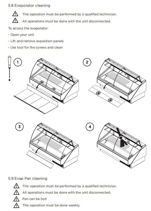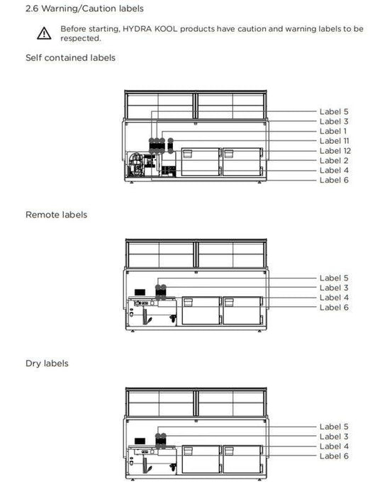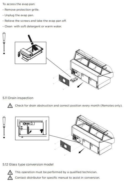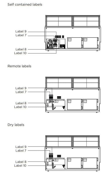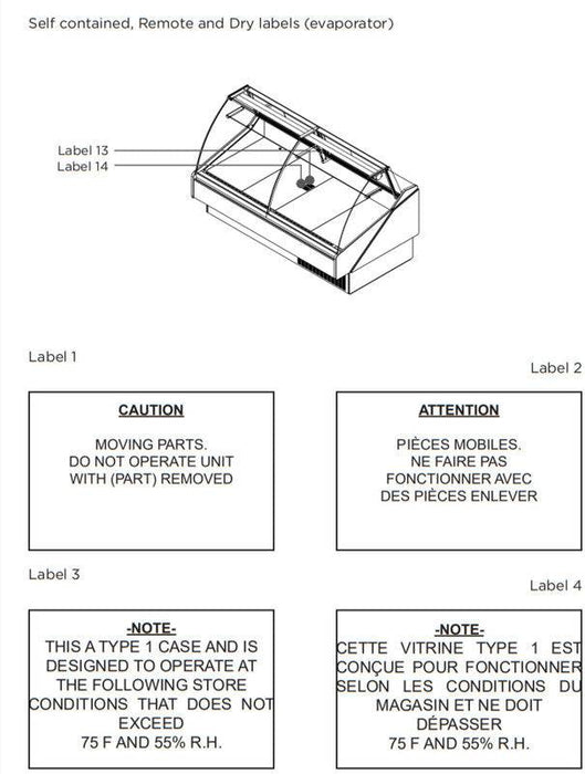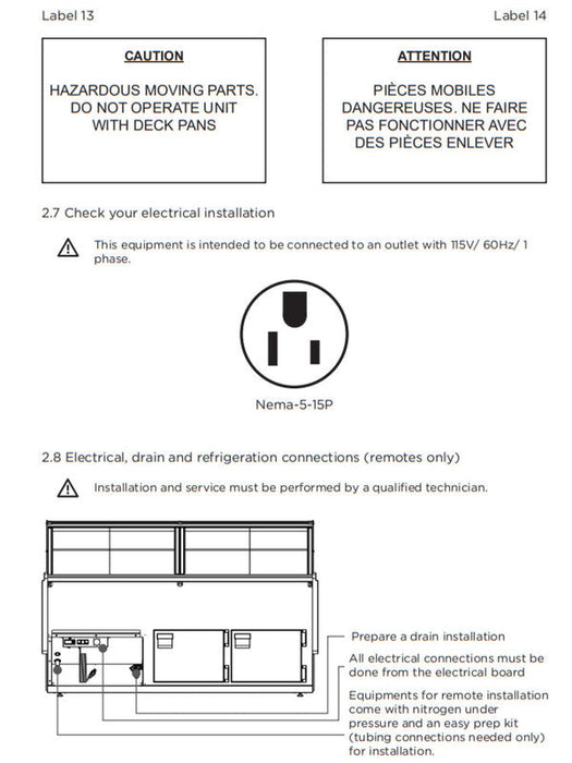 • On remote cases, if no floor drain is provided, a condensate evaporating pan must be ordered and 3.3 amps added to the amp load.