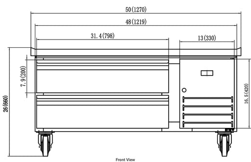View full detailsKool-It Chef Base Refrigerator 52-3/4"W x 30-1/2"D x 25-1/2"H (2) drawers (6) full size pan capacity digital temperature display automa...