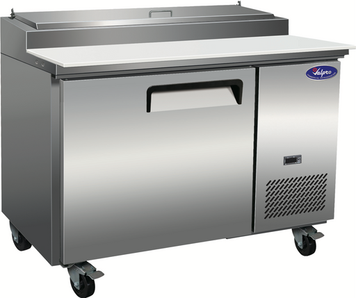 View full detailsValpro VPP47-HC Pizza Counter 47″ One Door Pizza Prep Table Refrigerator Valpro raised rail refrigerated pizza preparation tables are manufactured ...