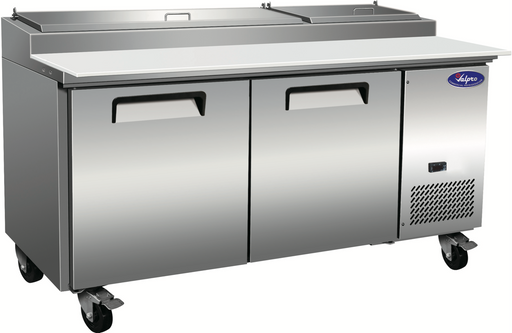View full detailsValpro VPP71-HC Pizza Counter 71″ Two-Door Pizza Prep Table Refrigerator Valpro raised rail refrigerated pizza preparation tables are manufactured...