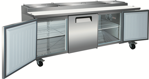 View full detailsValpro VPP94-HC 94″ Three Door Pizza Prep Table Refrigerator -Salad Counter 29″ Valpro raised rail refrigerated pizza preparation tables are manufa...