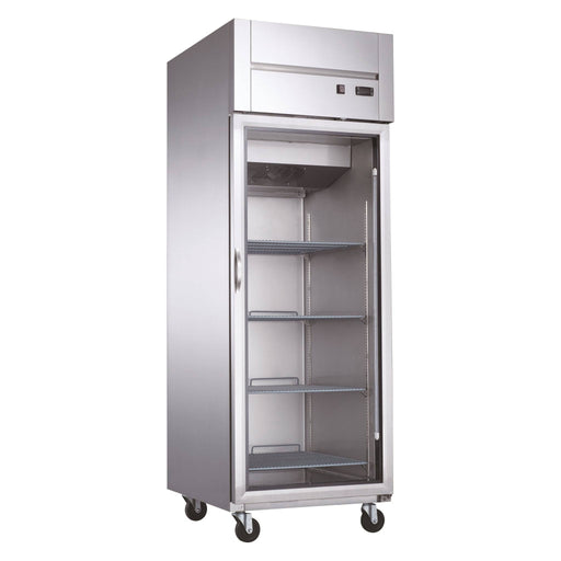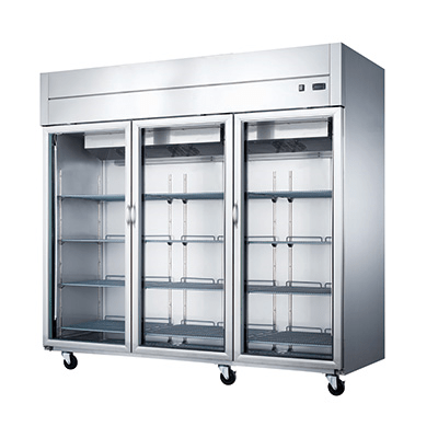 The Dukers D83AR-GS3 reach-in refrigerator is designed to suit the needs of any business who needs optimal performance without sacrificing design. Its’ three doors are reinforced with high-quality tempered glass for UV Protection. The heavy-duty 1 HP compressor is top mounted for excellent efficiency and better cooling. Digital controls fine-tune the desired interior temperature. Self-closing doors free up your hands for added convenience and ease of use. Auto-defrosting provides lower energy costs and colder temperatures. The included 12 shelves can be adjusted or removed for flexibility and maintenance. Easily move and position with four swivel casters.