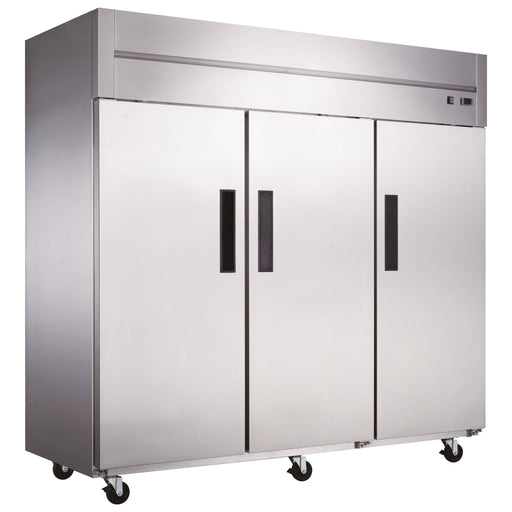 Dukers D83AR-GS3 Top Mount Glass 3-Door Commercial Reach-in Refrigerator, 82.625" Wide