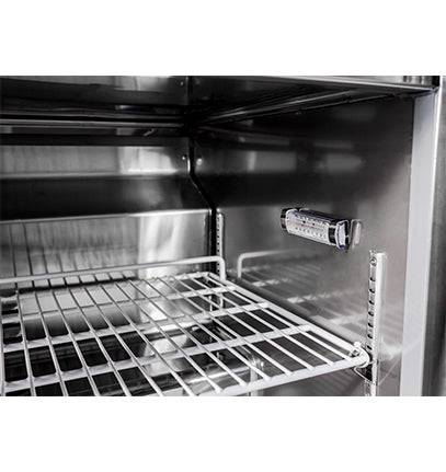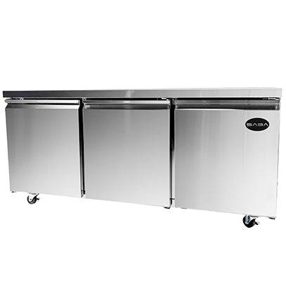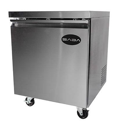 SABA under-counter refrigerator SUC-27R gives you a great amount of space for your goods below and can be used as a work top, while only occupying a small space within your kitchen. This design has a stainless steel interior and exterior with an aluminum finished back and easily fits under any countertop. These refrigerators come with heavy duty casters allowing easy movement for cleaning or maintenance. SABA Airs under-counter refrigerators are economical, yet designed to provide years of trouble-free service for any demanding application. They are recognized for having the best warranty that is supported by a network of authorized service technicians to protect your long-term investment.