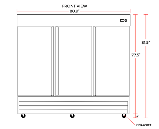 Refrigerador de tres puertas sólidas de 81" Coldline C-3RE