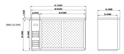 Refrigerador con barra trasera de 61,1" y 2 puertas corredizas IKON IBB-61-2G-24SD
