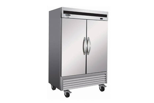 IKONPuertas batientes de acero inoxidable con barra trasera IKON IBB49-2G-24SS El gabinete refrigerado de dos secciones con puertas batientes de ace...