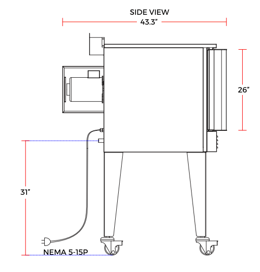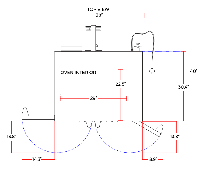 Dimensiones exteriores 38" de largo x 43,3" de profundidad x 60" de alto