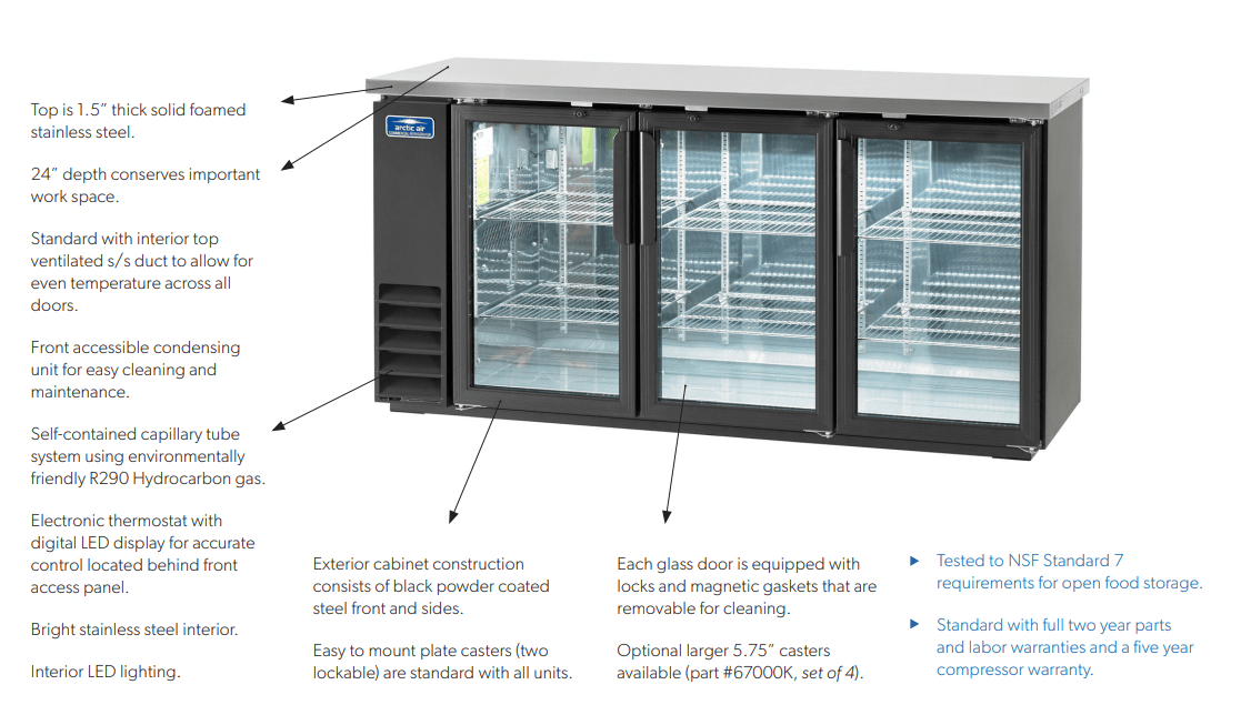 Arctic Air ABB72G 73" Three Door Glass Back Bar Refrigerator, 20.7 Cu. Ft.