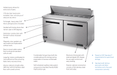 Arctic Air AMT60R 61.25" Two Door Mega-Top Sandwich/Salad Refrigerated Prep Table, 15.5 Cu. Ft.