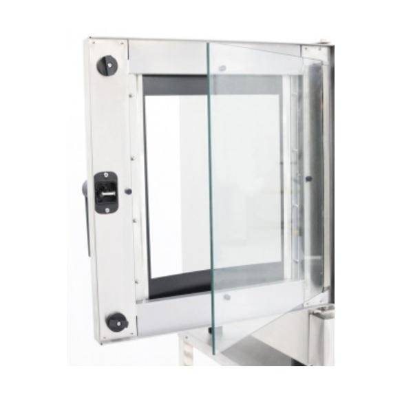This convection oven was developed with the customer in mind. With its space saving design and it's 5 full size pan (18? x 26?) holding capacity, it is suitable for restaurants and bakeries of all sizes. This unit is built to provide you with higher productivity due to its easy control and optimal performance.