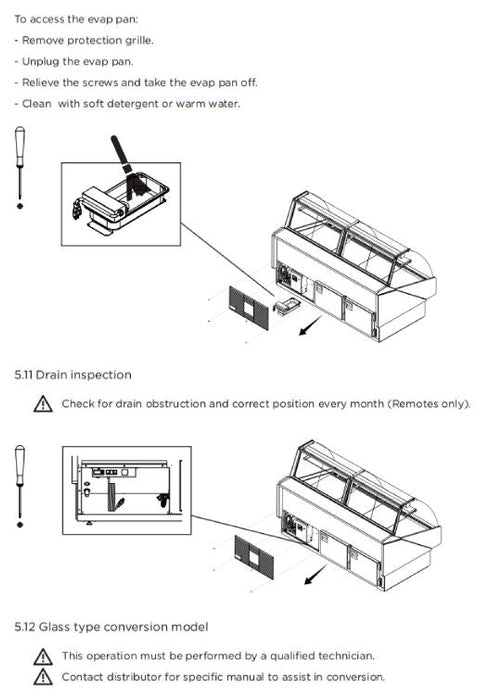 - On remote cases, if no floor drain is provided, a condensate evaporating pan must be ordered and 3.3 amps added to the amp load.