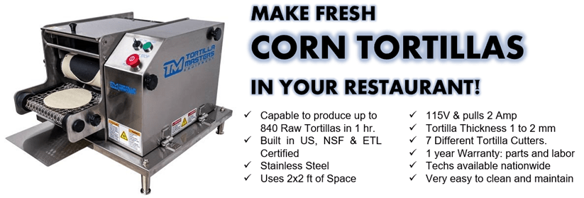 The Tortilla Masters Ventura Flex Corn Tortilla Machine